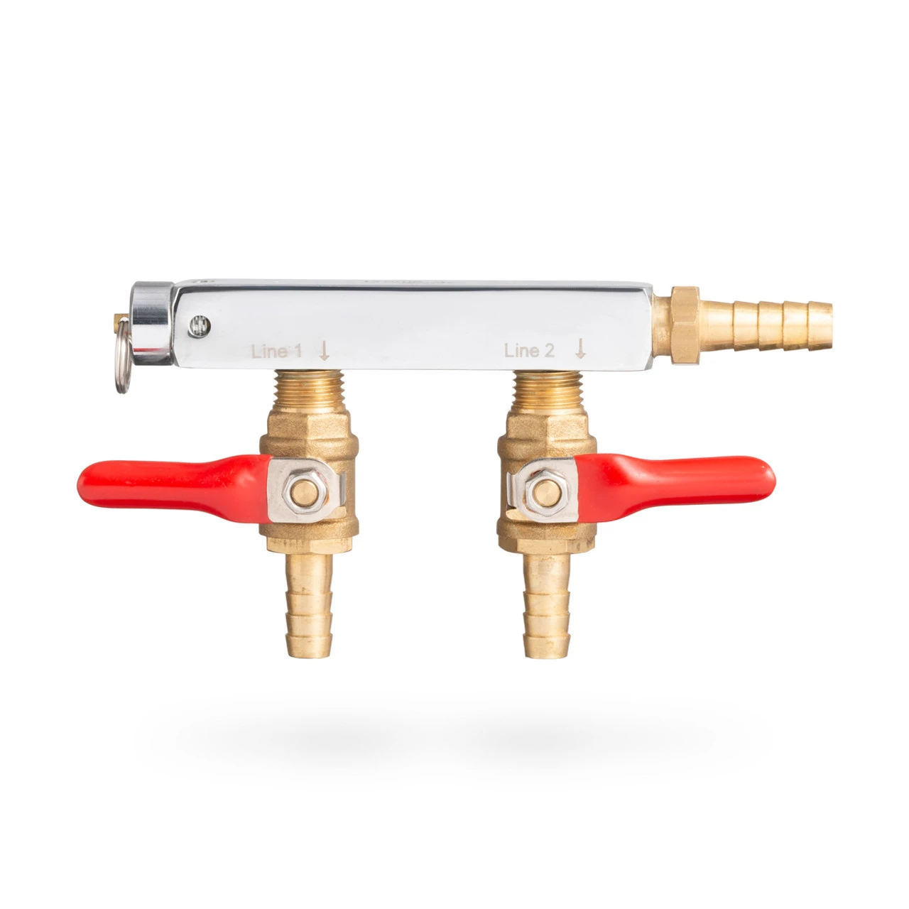Each distributor has a shut off valve to turn off the beer gas distribution when your system isn’t in use or you’re changing a keg. Made of brass, it’s the easiest way to split air line in a multi-tap draft system.