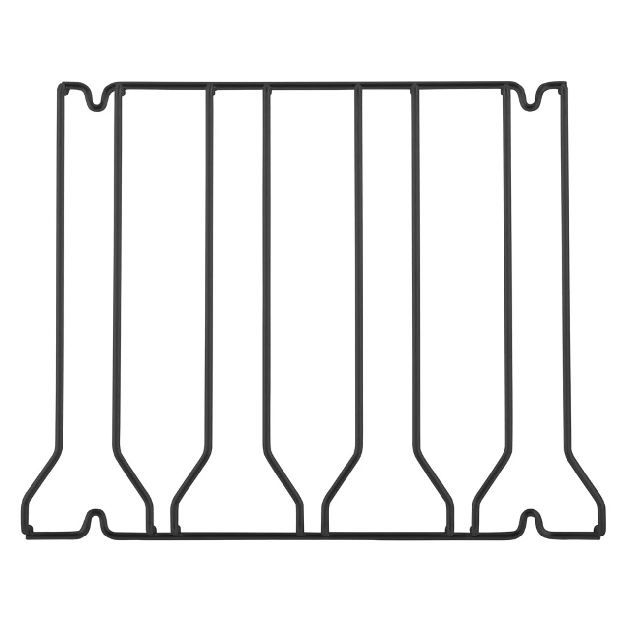 Durable, welded steel wire is powder coated with a black finish that makes this stem glass rack a practical addition to any setting. It’s easy to install, and your delicate stemware hangs securely in the sturdy channels. Use it for wine glasses, martini glasses, coupes, snifters, and flutes to free up valuable shelf and counter space.