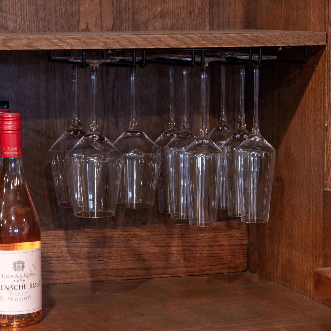 Manage your glassware inventory with style and ease using the four channels of this hanging glass rack.