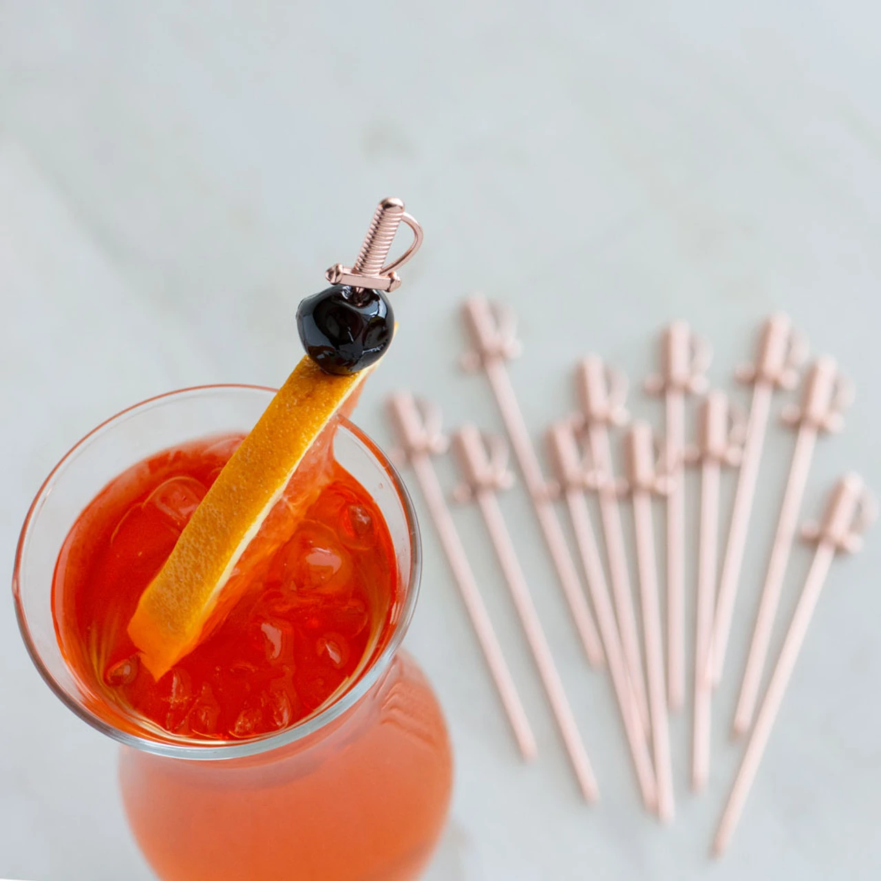 These stir sticks have the traditional sword design you’re used to seeing in bars & restaurants, but with an extra touch of class. Made in copper-plated style, these stainless-steel cocktail picks are built for use while entertaining, time and time again. Reusable cocktail garnish picks come in a package of 12.