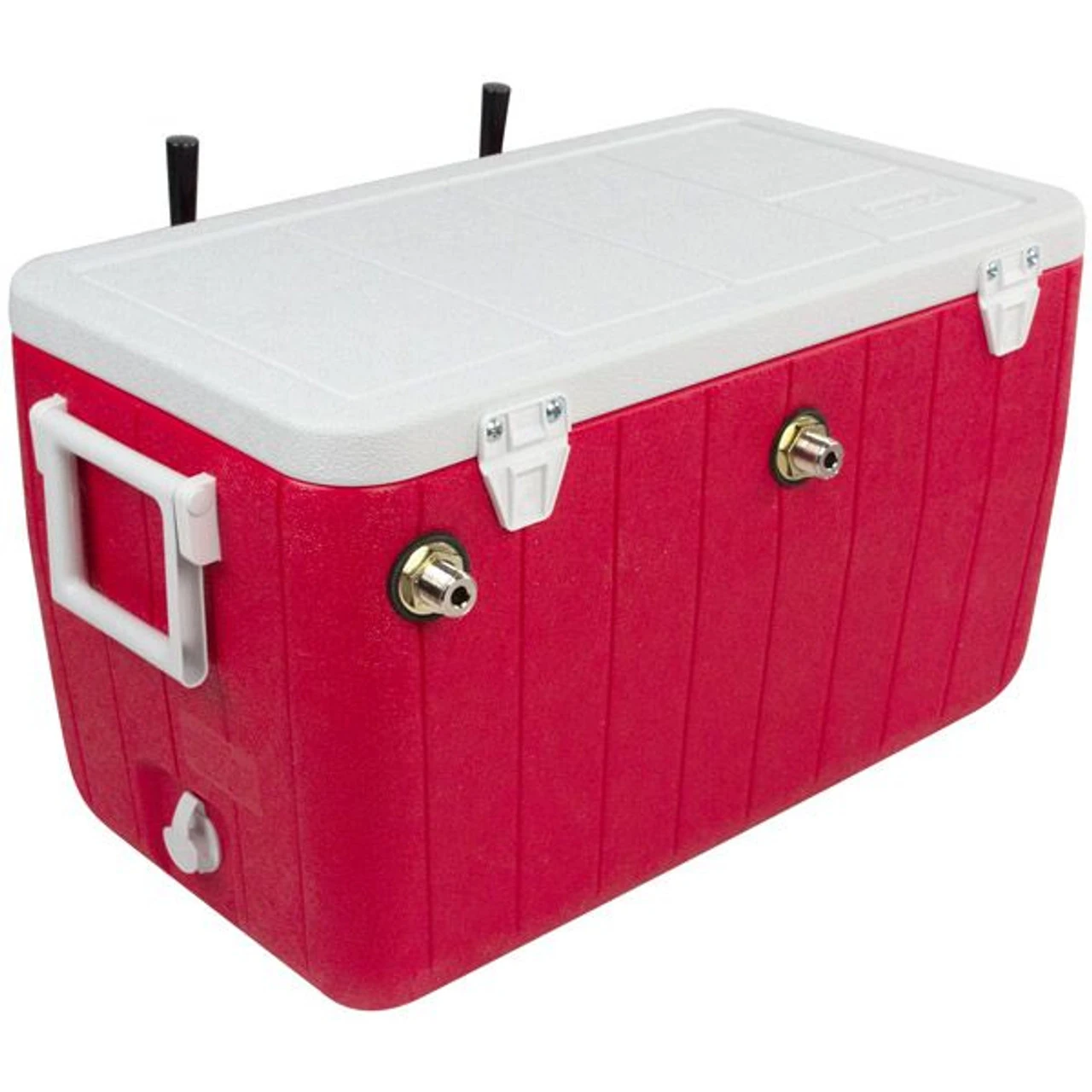 This 48 quart cooler has a fully-functional draft beer faucet and shank pre-assembled in its side. The two included 120-foot stainless steel jockey box coils should be kept in an ice bath to provide an ultimate refreshing experience with each effortless pour. These extra long coils allow for extreme cooling of your beer as it travels 120 feet instead of the standard 50, and a larger surface area of the coils are in contact with the ice water.