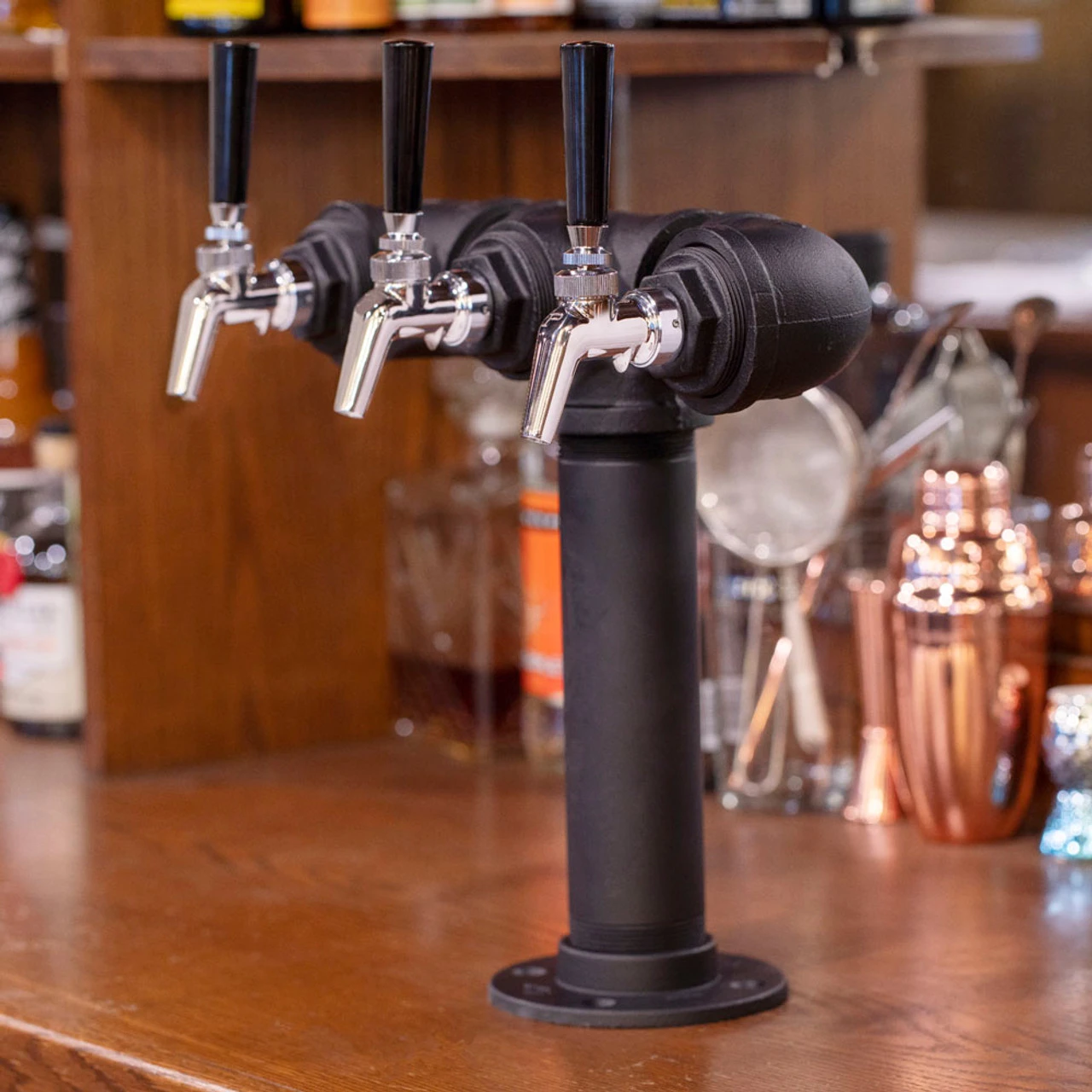 Upgrade your atmosphere with the industrial elegance of this unique triple tap draft beer tower.