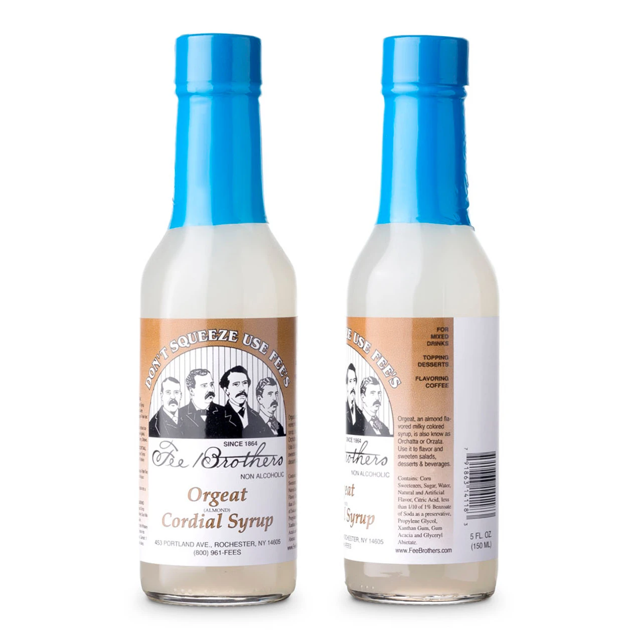 Fee Brothers Bar Cocktail Mixers Starter Pack includes a bottle of the company’s famous West Indies Orange Bitters plus a bottle each of five non-alcoholic syrups: falernum, blue curacao, curacao-triple sec, orgeat, and sloe gin.