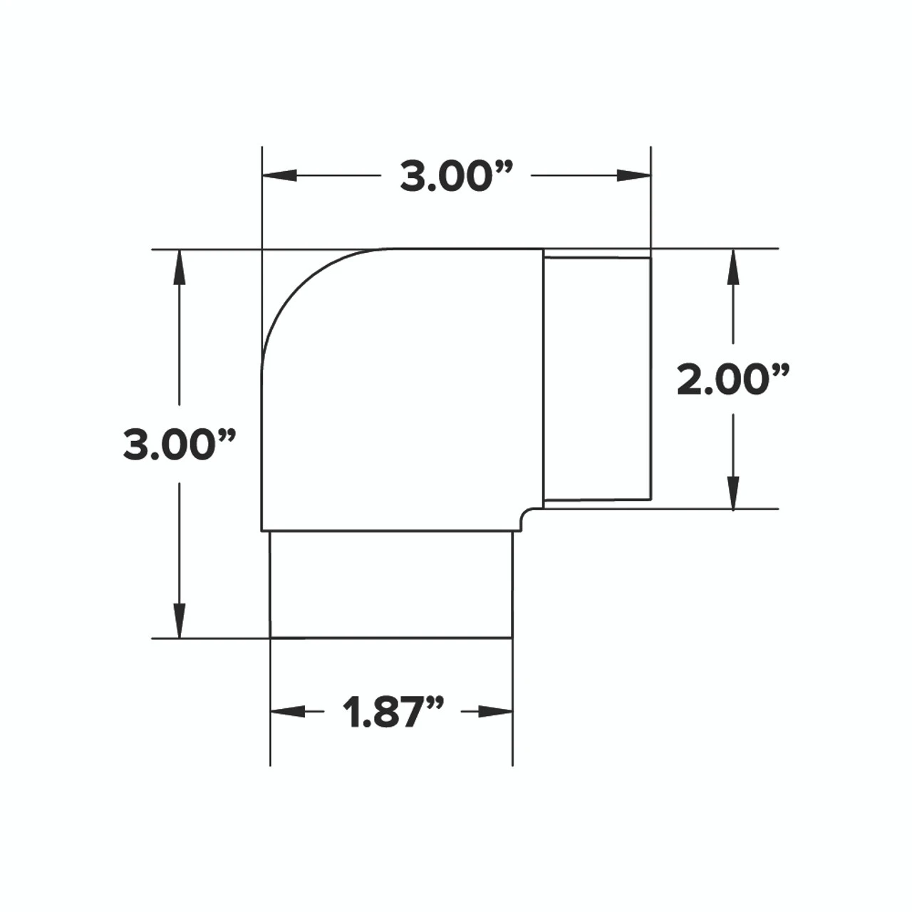 - Elbow fitting slides into tubing for a straight flush look