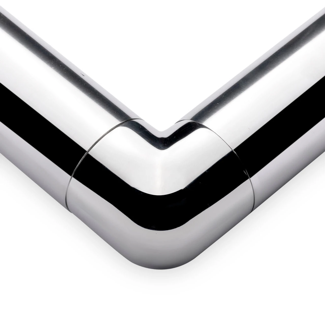 The polished steel finish of this elbow fitting will exactly match your . Just slide a rail on either end, secure the tubing with matching , and enjoy the comfortable addition that seems custom-fit to match any L-shaped turns in your bar.