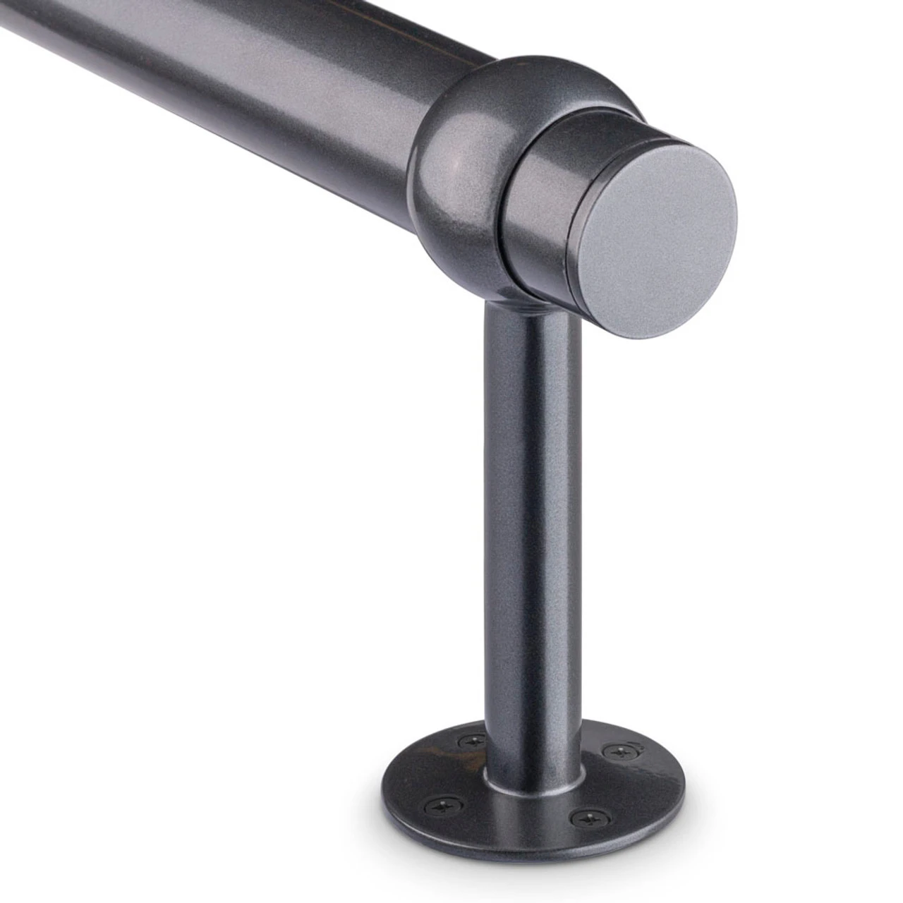 - Bracket foot mounts to floor (or wall/bar face for hand rail)