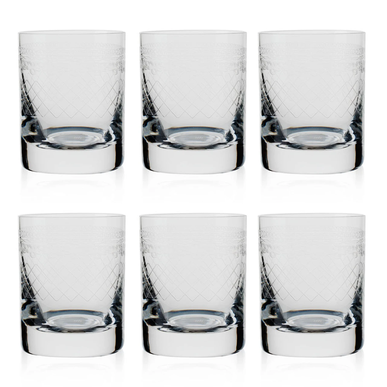 - Etched with a 1910s era design around each glass